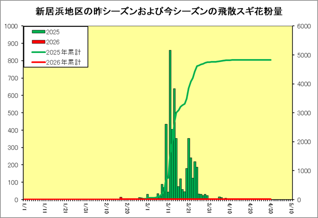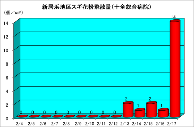 | スギ花粉飛散量 | 14個/cm2/日 |