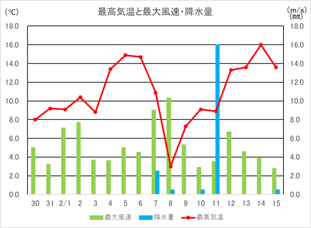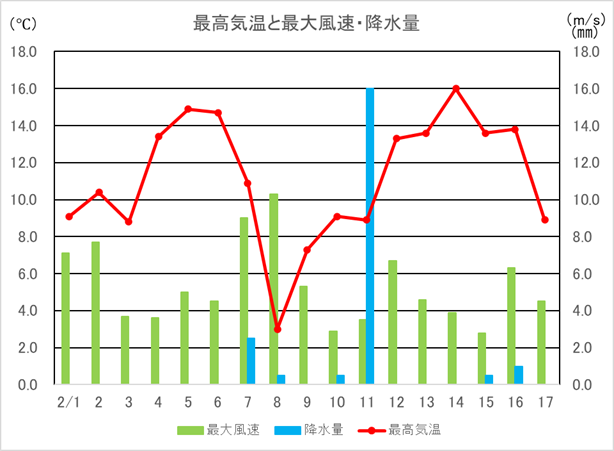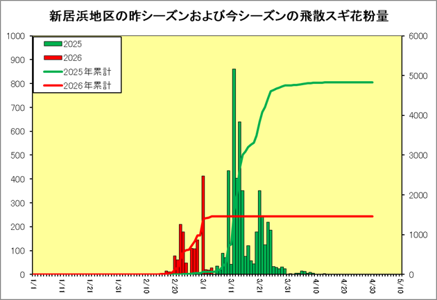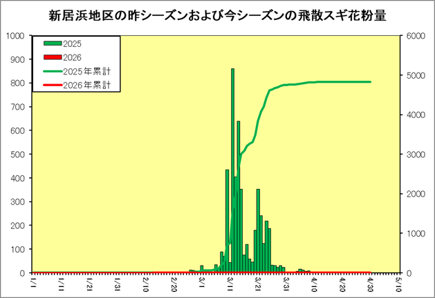 | マツ花粉飛散量 | 0個/cm2/日 |