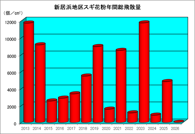 | スギ花粉飛散量 | 2個/cm2/日 |