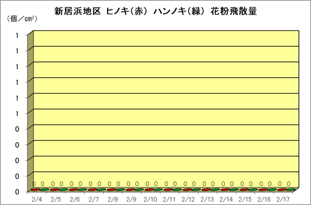 | ヒノキ花粉飛散量 | 0個/cm2/日 |