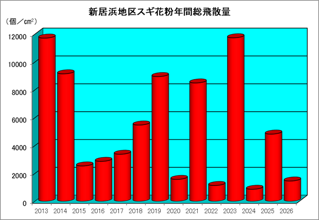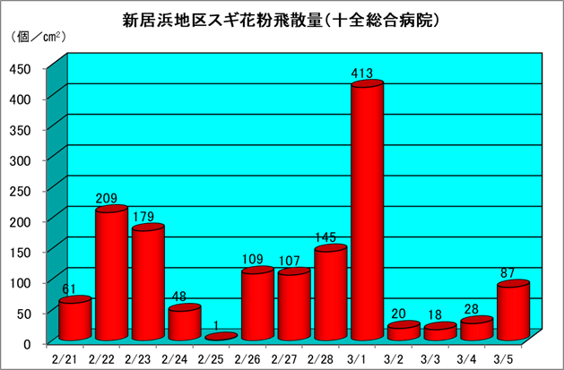 | スギ花粉飛散量 | 87個/cm2/日 |