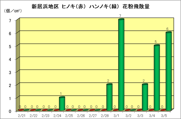 | ハンノキ花粉飛散量 | 6個/cm2/日 |